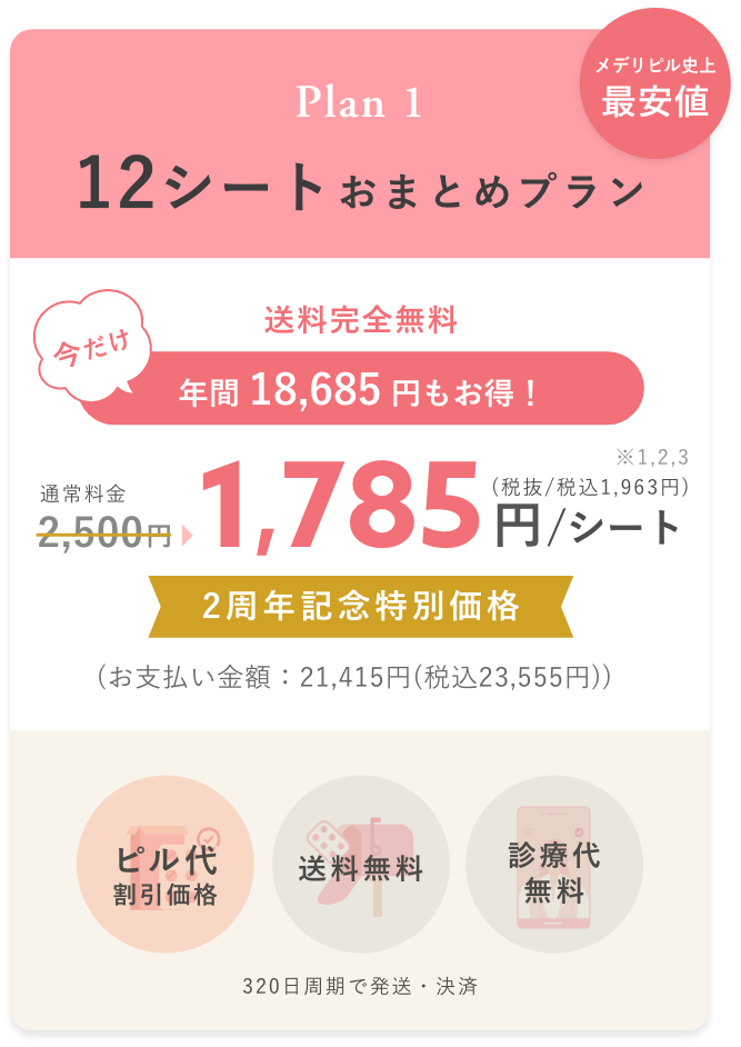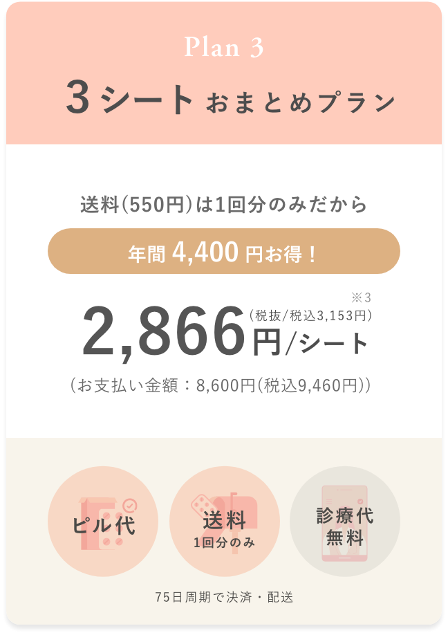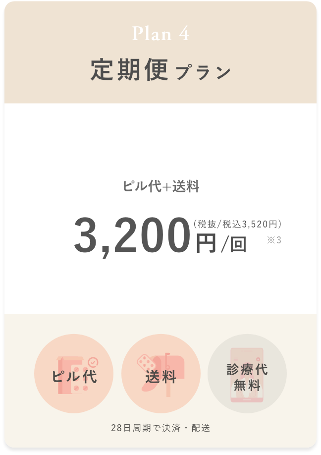 予約日時に医師とのオンラインでの診療を行い、ピルの処方が決まり次第、最短翌日でお手元にピルを届け、それ以降は配送プランに応じて定期配送いたします。
