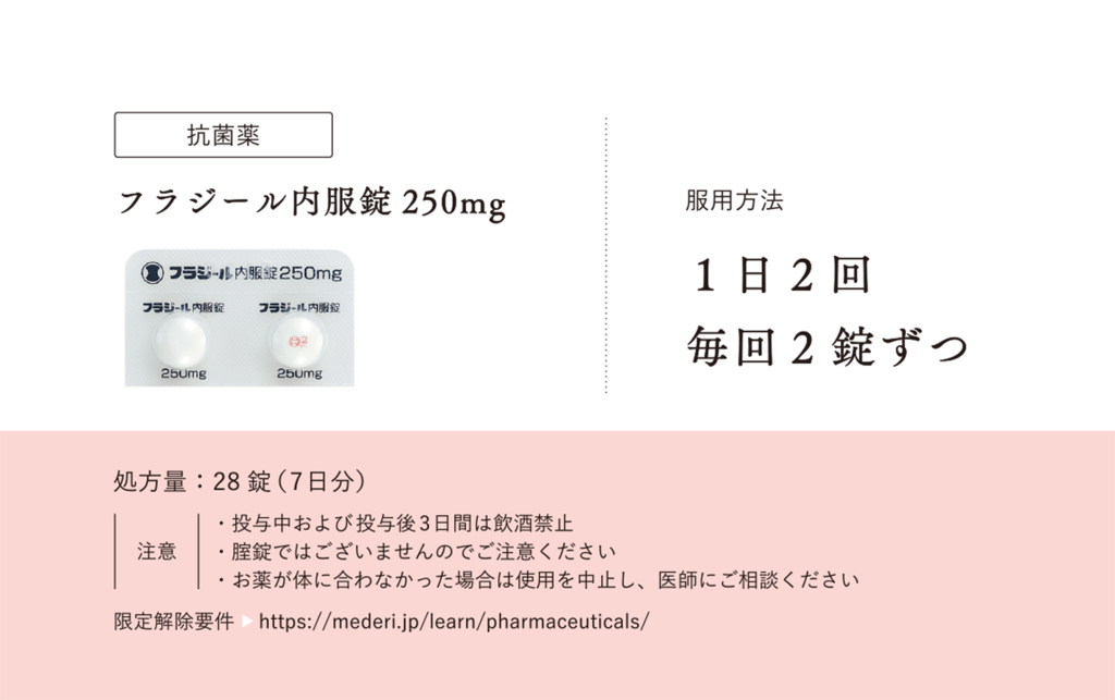 オンラインでピルの診療・処方・相談|メデリピル>ピルについて学ぶ>フラジール内服錠250mgの服用方法