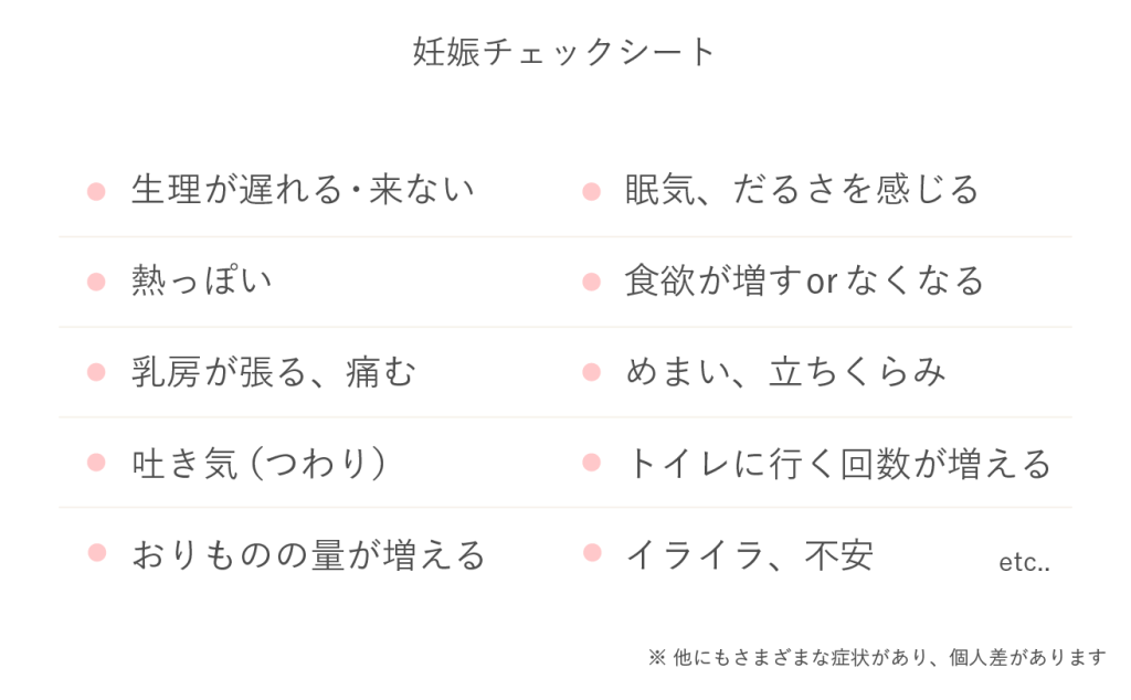 このような兆候があらわれたら市販の妊娠検査薬で調べたり、産婦人科を受診しましょう。