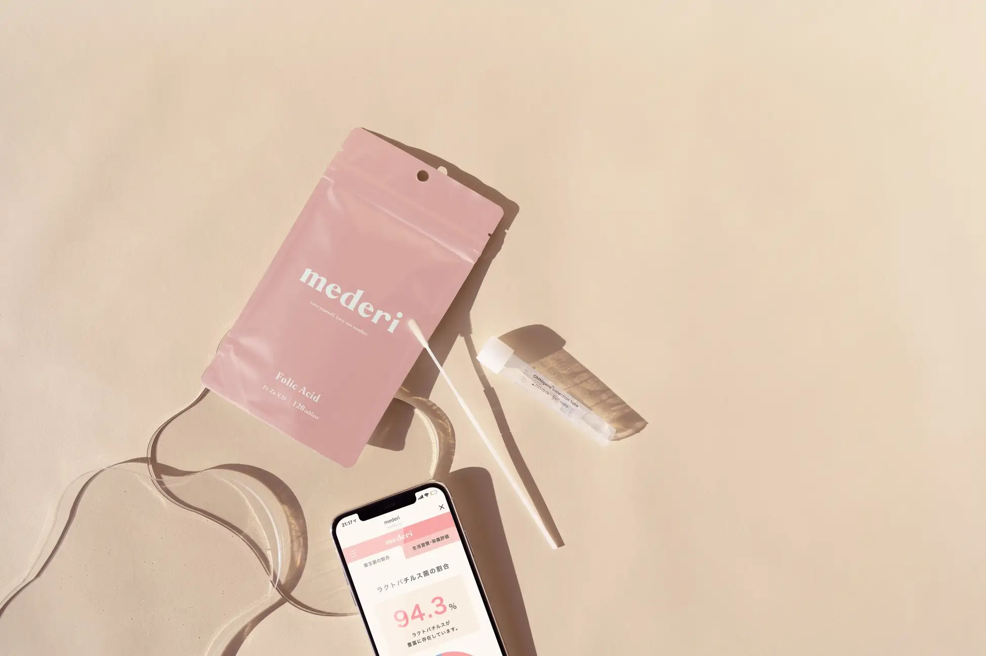 自宅にいながら膣内の善玉菌と悪玉菌の割合を高精度検査センターで分析できる膣内フローラチェックキット「mederi Flora Check(メデリフローラチェック)」。