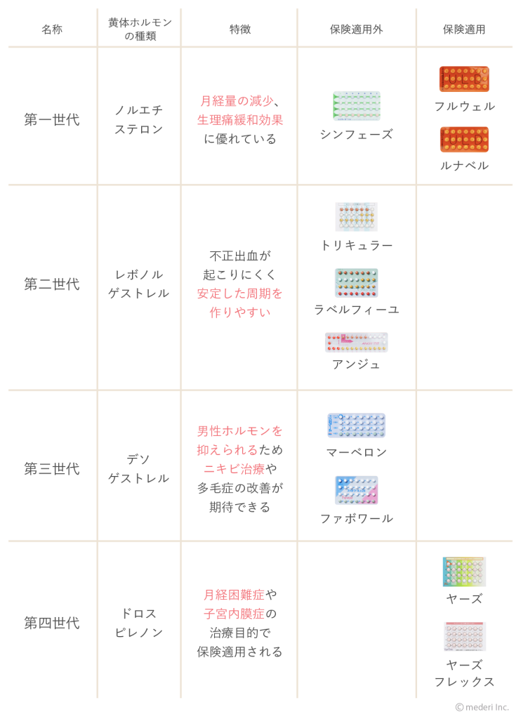 ※mederi Pillでは保険適応での処方ができませんので、あらかじめご了承ください。mederi Pillの取り扱いのピルはこちら(https://mederi.jp/pills/)よりご確認ください。