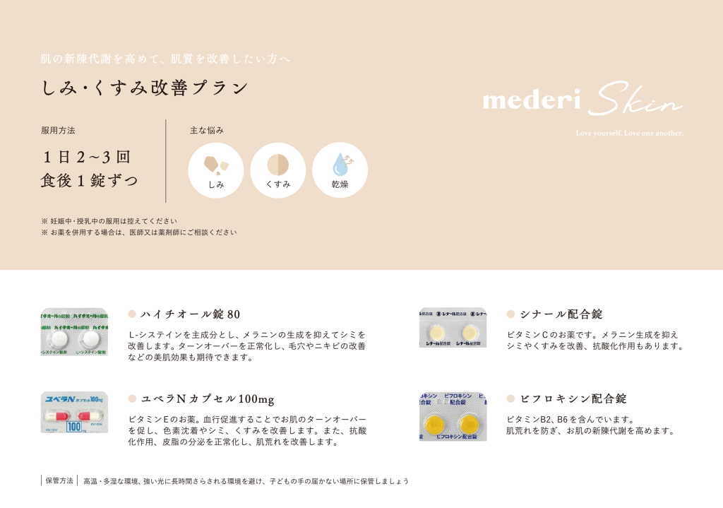 オンラインでピルの診療・処方・相談|メデリピル>ピルについて学ぶ>しみ・くすみ改善プランの服用方法