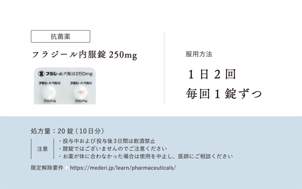 オンラインでピルの診療・処方・相談|メデリピル>ピルについて学ぶ>フラジール内服錠250mgの服用方法