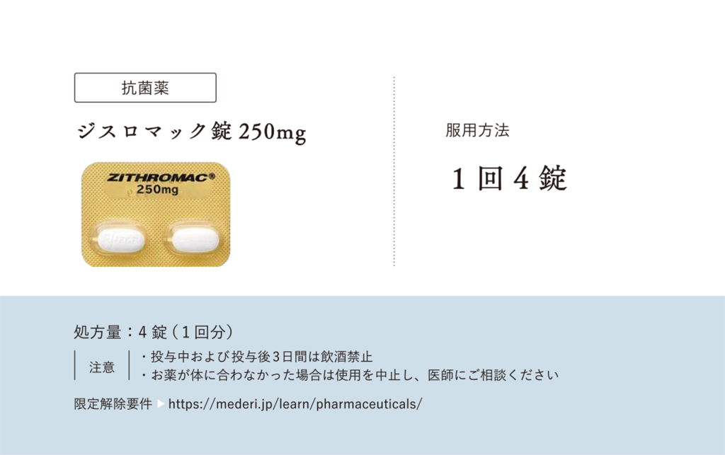 オンラインでピルの診療・処方・相談|メデリピル>ピルについて学ぶ>ジスロマック錠250mgの服用方法