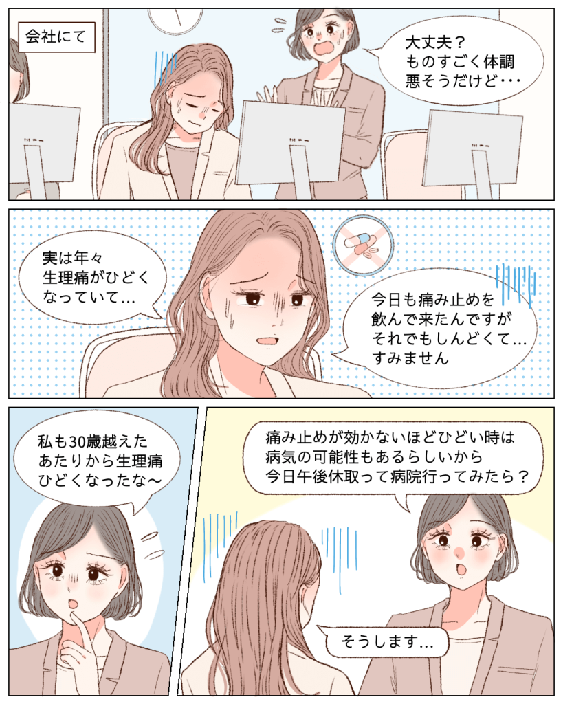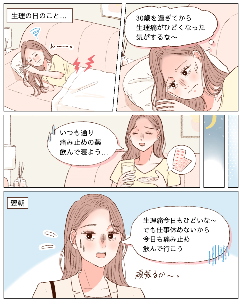 今回のページでは、重い生理痛に悩む女性の日常をご紹介します。彼女はどのように乗り越えるのでしょうか。