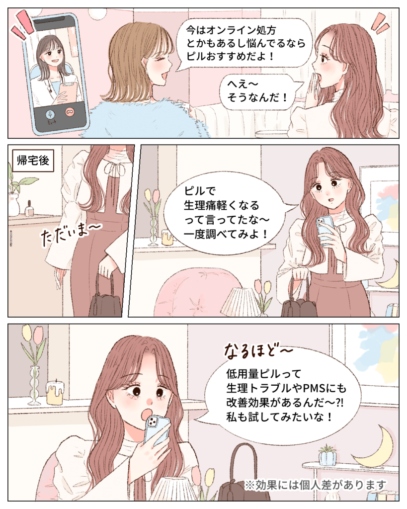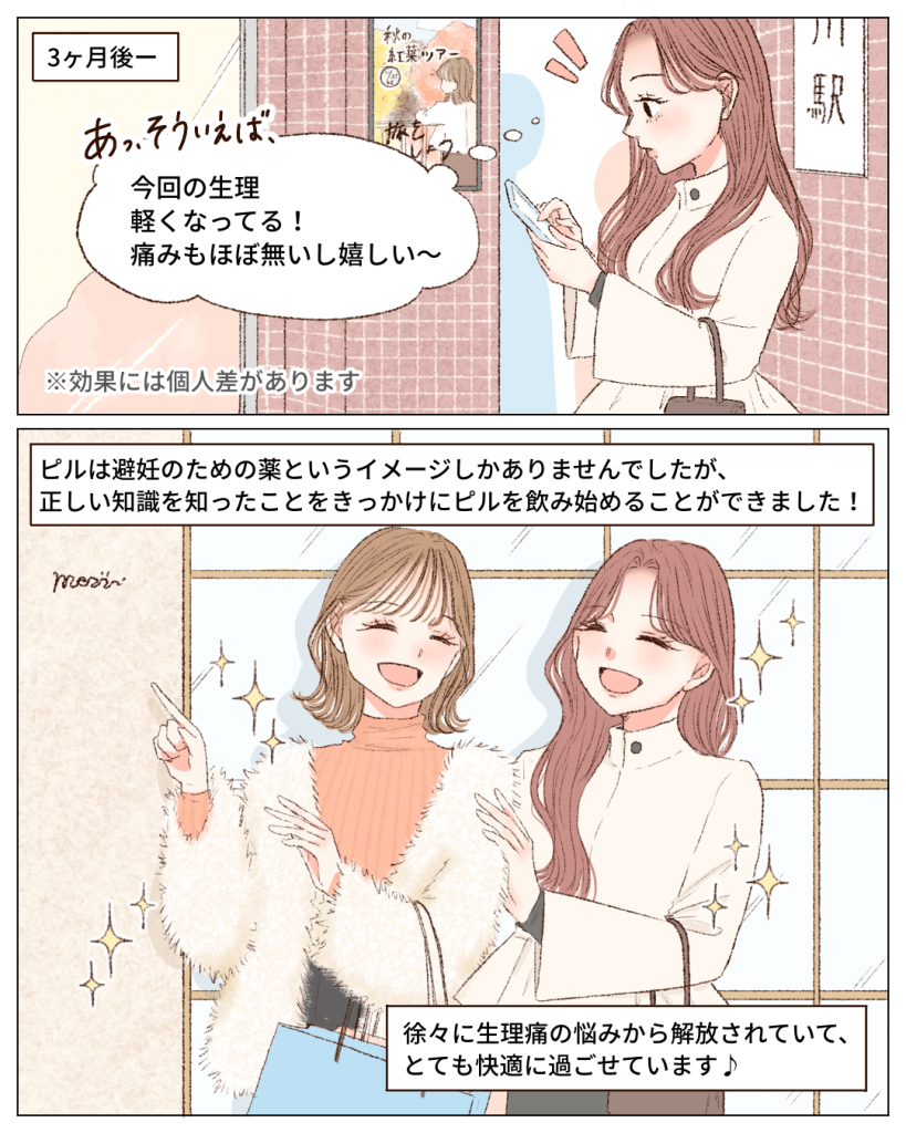 「ピル=避妊」というイメージから一転し、ピルの持つさまざまな効果を理解できたのではないでしょうか?