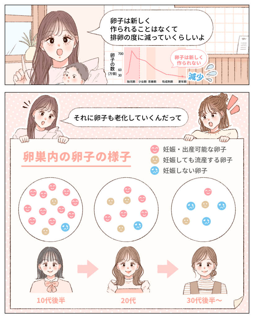 年齢とともに減少・老化する卵子について、仕組みやリスクを覚えておきましょう。