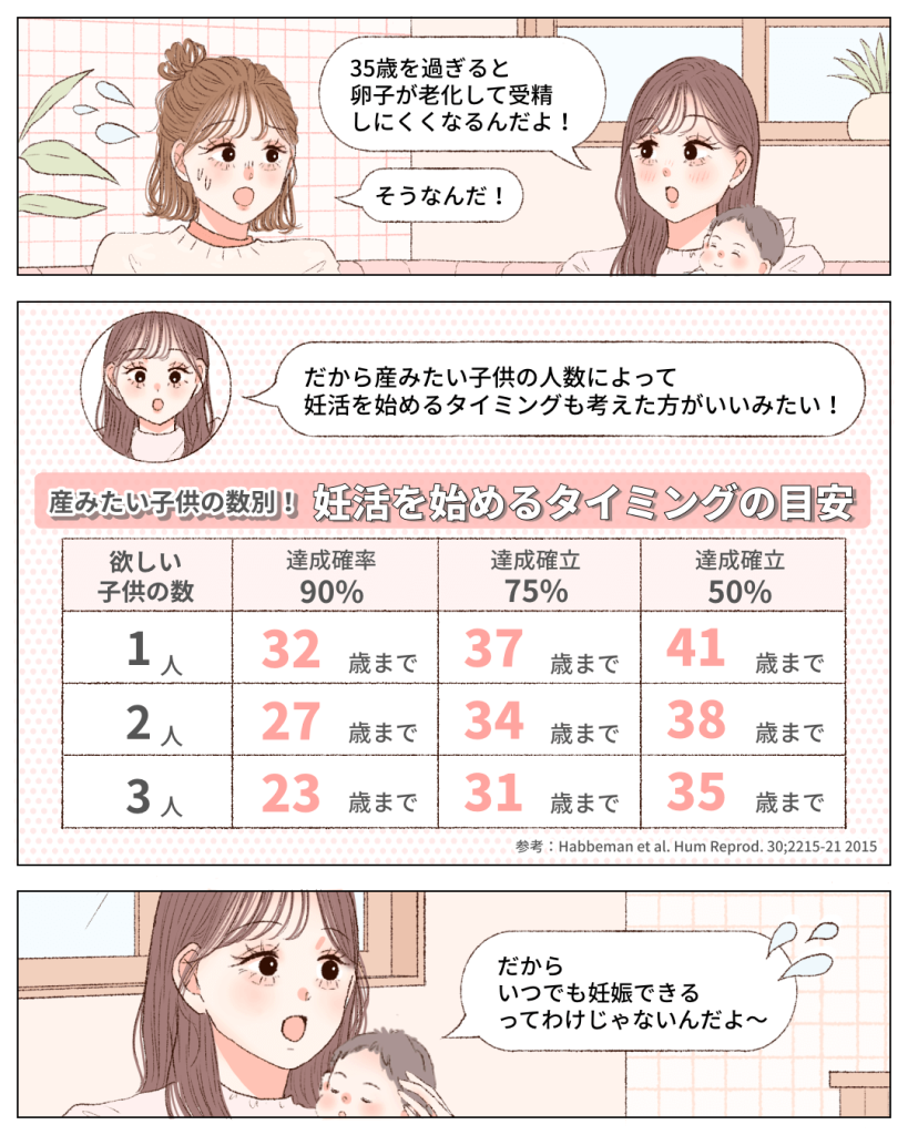 個人差はありますが、35歳をすぎると卵子の表面的なツヤや弾力性が失われたり、形がいびつになったりすることで、受精しにくくなるリスクが高まると言われています。