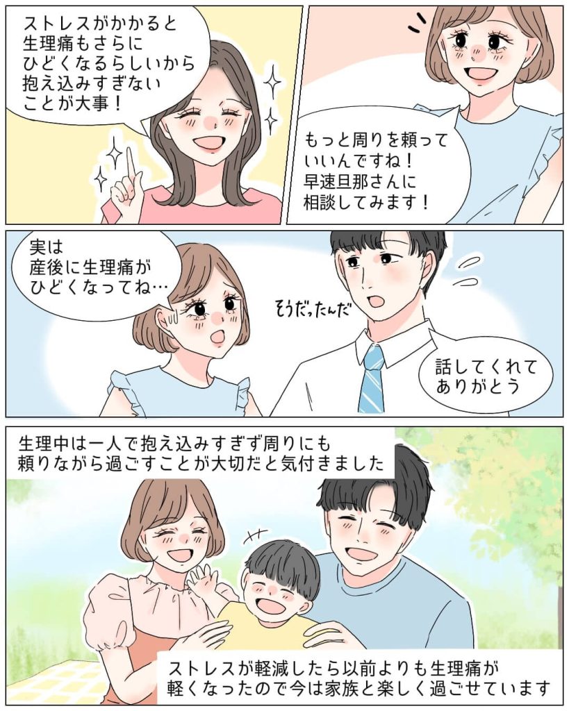 また、育児によるストレスがかかりやすく、生理痛やPMSなどの生理トラブルが重くなる方も多いです…無理をしすぎるのではなく、パートナーや周囲と協力しながら乗り越えていくことが大切です。
