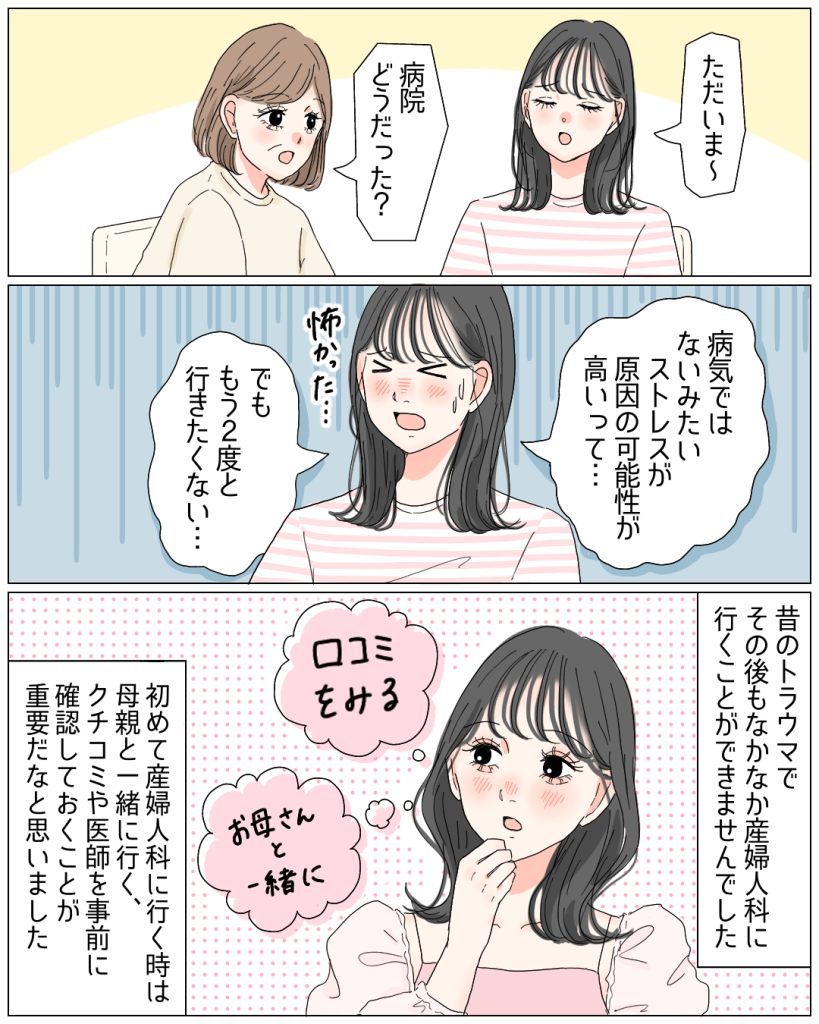 はじめての産婦人科医がトラウマになり、その後の通院ハードルが上がってしまうこともあるので事前に口コミをチェックしておくこともおすすめです。