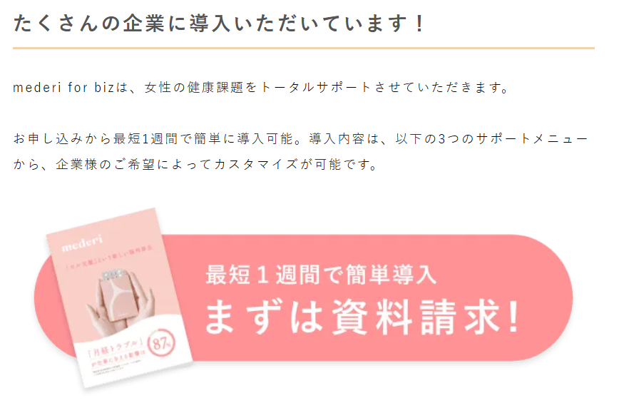 mederiでは、オンラインピル診療サービス『mederi Pill(メデリピル)』、企業向け健康支援・福利厚生サービス『mederi for biz(メデリフォービズ)』をはじめとする各サービスを通じて、女性が自分の身体と向き合い、より自分らしく生きられる社会の実現を目指しています。