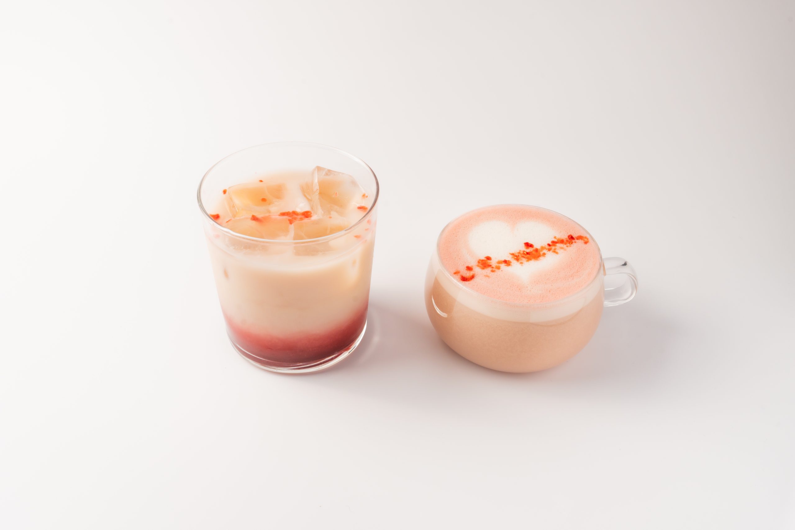 <左:ベリーオーツミルクラテ(アイス)、右:同(ホット)>