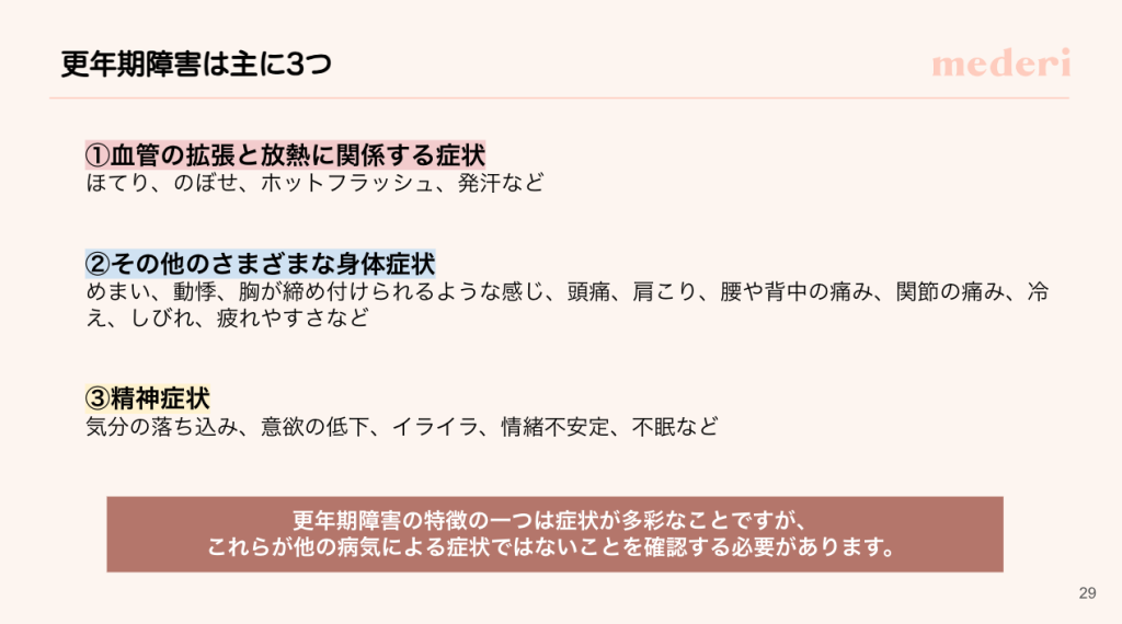 そして、「フェムテック」と呼ばれる業界では、海外市場も含めて多様なサービスが誕生しています。mederiの主力事業である「mederi Pill(メデリピル)」のような月経分野のサービス、妊娠・不妊分野のサービス、更年期分野のサービスなどライフステージに合わせて多岐に渡りますので、ご自身のお悩み解決に繋がるフェムテックサービスを活用して、より女性が健康で自分らしく生きられる社会に近づいていくと嬉しく思います。