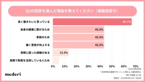 また「女性の健康関連の福利厚生」を重要視している理由としては、「長く働きたいと思っている」が約70%多くを占めました。ライフイベントに柔軟に対応できる制度がある企業は、女性が安心してキャリアを築くための基盤となっているようです。