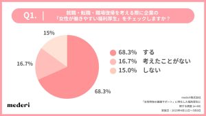 約70%の女性が、就職・転職・職場復帰時に「女性が働きやすい福利厚生」を事前に確認している。