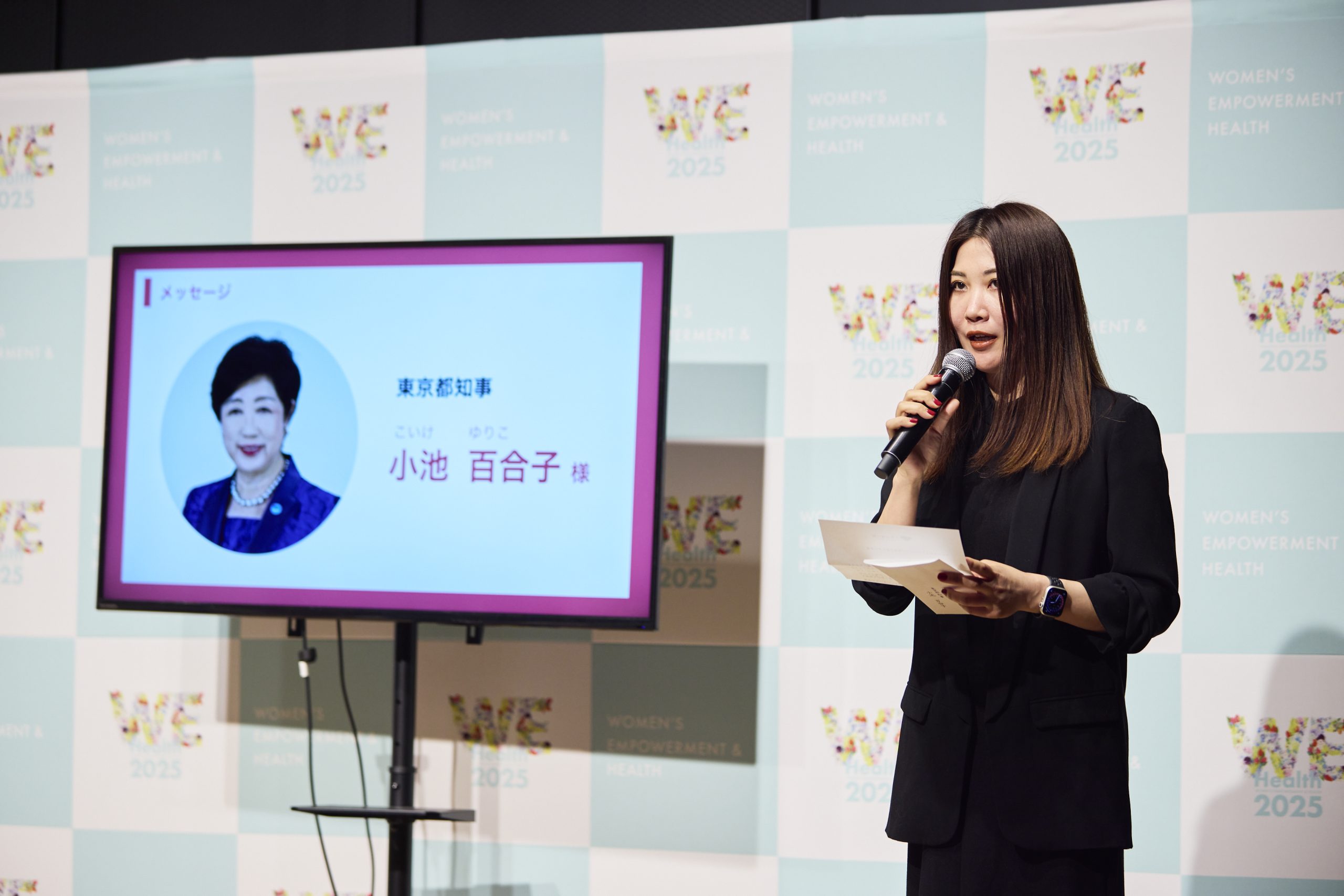 イベントの最後には、東京都知事 小池 百合子 氏 からの応援メッセージが届けられ、女性活躍推進協議会 幹事 株式会社 Vitalogue Health 代表取締役 CEO 長谷川 彩子 氏からその内容を共有されました。