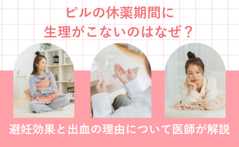 低用量ピルの1サイクル(28日)のうち、最後の4~7日間は服用をお休みする期間を「休薬期間」といいます。この期間は成分の入っていない偽薬を飲むことが多く、出血が起こります。これを「消退出血」と呼び、生理に似ていますが、ピルで厚くなった子宮内膜が排出されるものです。休薬期間は、卵巣や子宮の働きを整えるためのメンテナンス期間と考えられます。