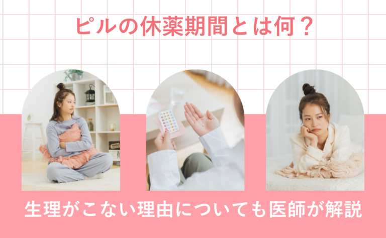 低用量ピルの1サイクル(28日)のうち、最後の4~7日間は服用をお休みする期間を「休薬期間」といいます。この期間は成分の入っていない偽薬を飲むことが多く、出血が起こります。これを「消退出血」と呼び、生理に似ていますが、ピルで厚くなった子宮内膜が排出されるものです。休薬期間は、卵巣や子宮の働きを整えるためのメンテナンス期間と考えられます。