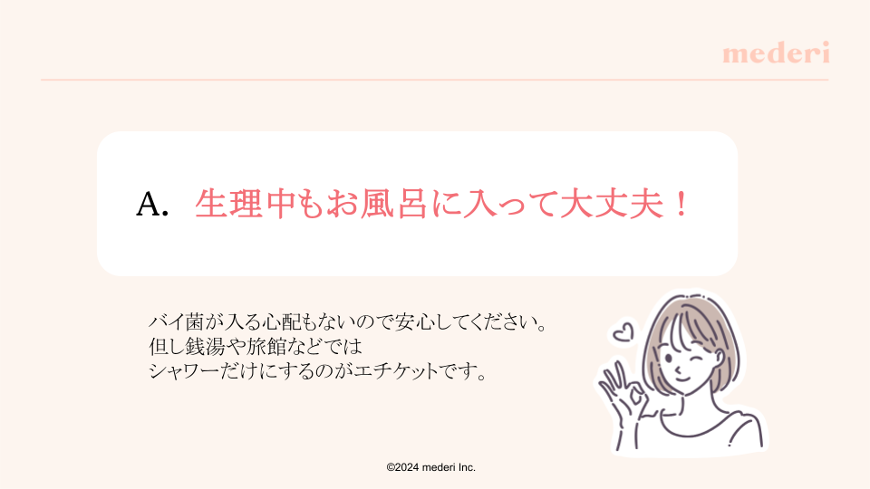 「今まで生理で不安になることが多かったのですが、生理中でもお風呂に入ってよいというのが印象的で、お風呂に入れるとリラックスができるのでいいなと思いました。自分のことも含めて、生理について知ることができてよかったです。」