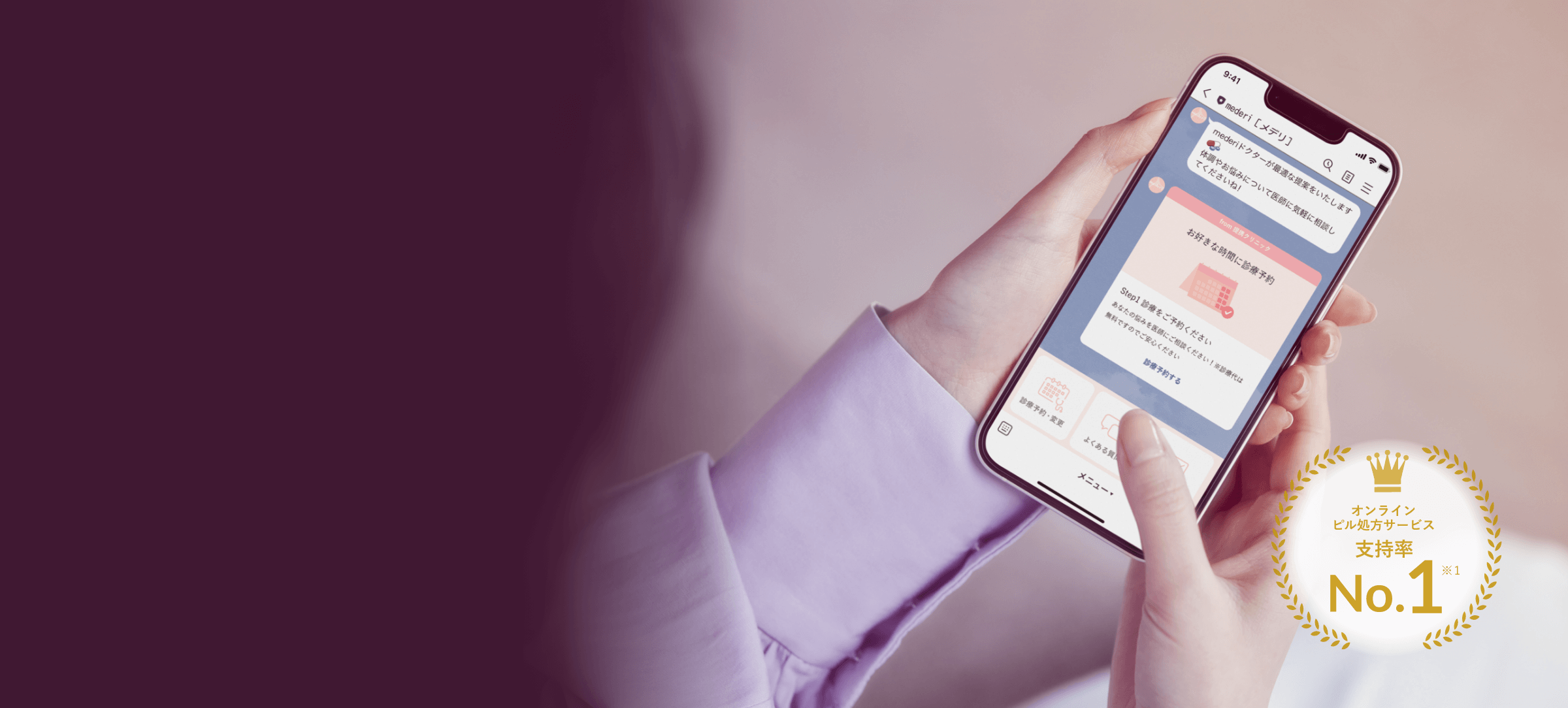 PMSや生理トラブルの悩みや不安を医師にオンラインで相談可能です。※ 医師の診察により薬が処方された場合、お届けとなります