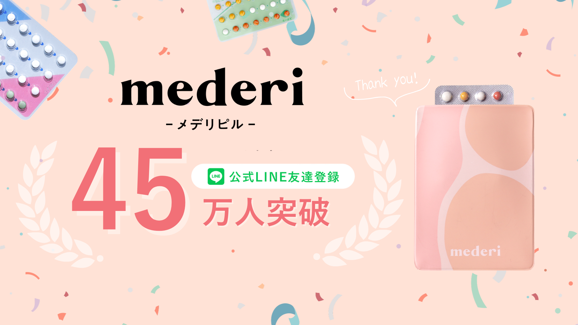 オンラインピル診療サービス『mederi Pill(メデリピル)』を提供するmederi株式会社(本社:東京都目黒区、代表取締役 坂梨 亜里咲 以下、mederi)は、2025年5月、LINE公式アカウントの友だち登録者数が45万人(2025年5月12日時点:451,960人)を突破いたしました。