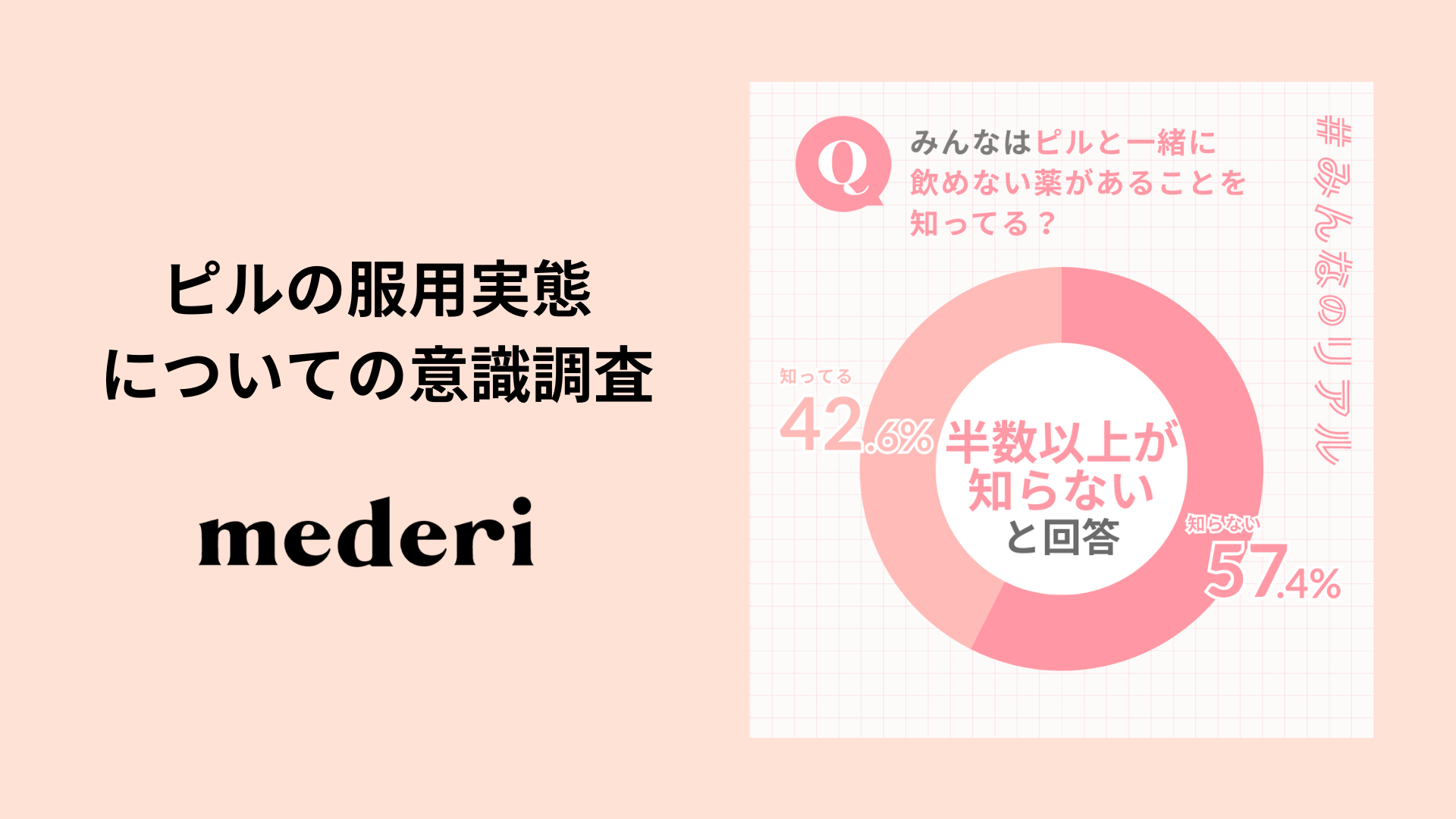 オンラインピル診療サービス『mederi Pill(メデリピル)』を提供するmederi株式会社(本社:東京都目黒区、代表取締役 坂梨 亜里咲 以下、mederi)は、女性のヘルスケアに関する意識や実態を把握するため、定期的に調査を実施しています。