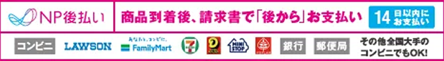 後払いのご注文には、株式会社ネットプロテクションズの後払いサービスが適用され、同社へ代金債権を譲渡します。「NP後払い利用規約及び同社のプライバシーポリシー」に同意して、後払いサービスをご選択ください。ご利用限度額は累計残高で49,999円(税込)迄です。詳細はバナーをクリックしてご確認ください。ご利用者が未成年の場合、法定代理人の利用同意を得てご利用ください。なお、お支払い期日を過ぎてもお支払いの確認ができない場合、手数料が加算される場合がございます。(NP後払い利用規約:https://np-atobarai.jp/terms/atobarai-buyer.html)