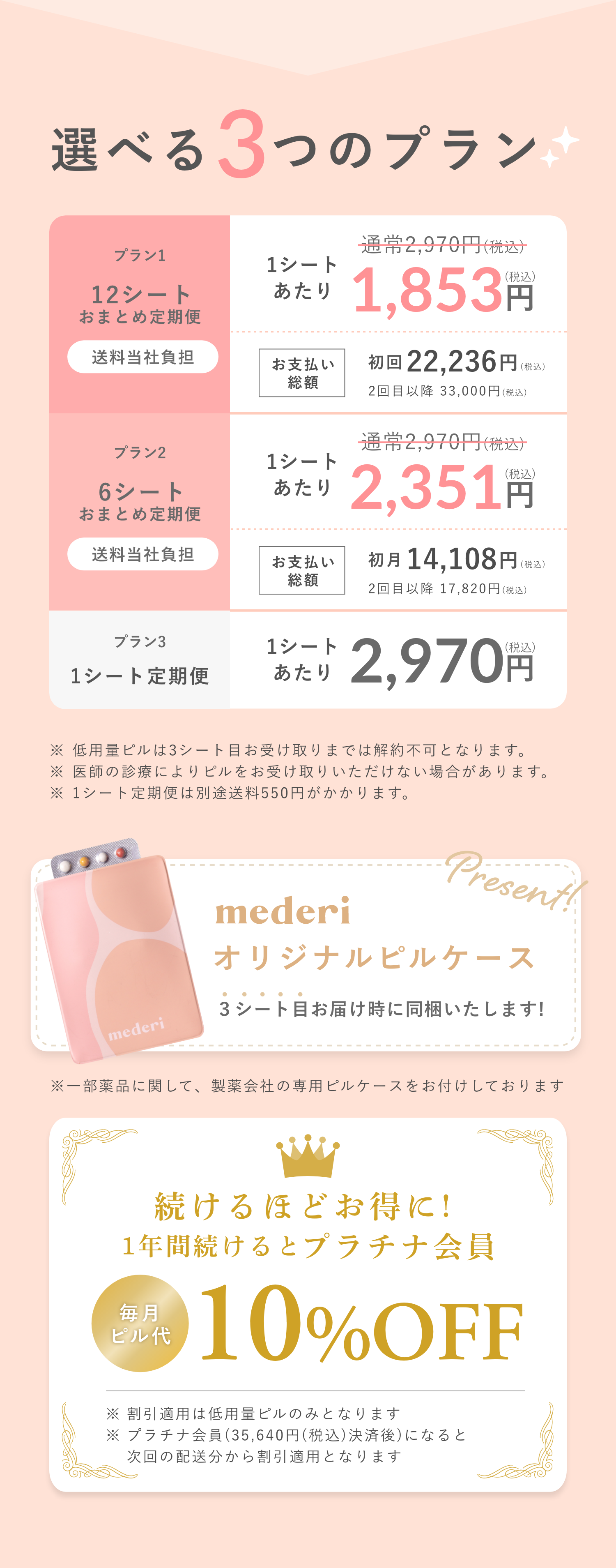 さらに!当サイトから申し込んだ人限定!2回目のピル代が10%OFF クーポンコード:mederi10