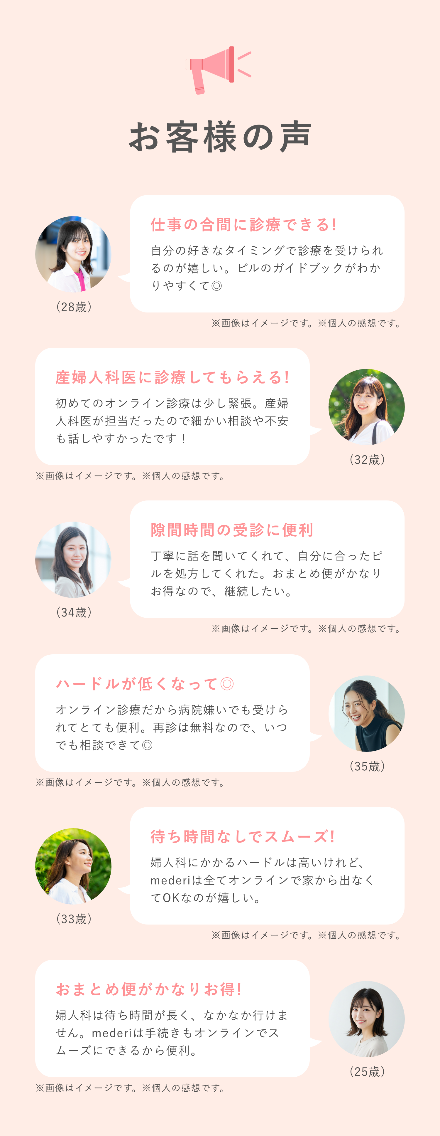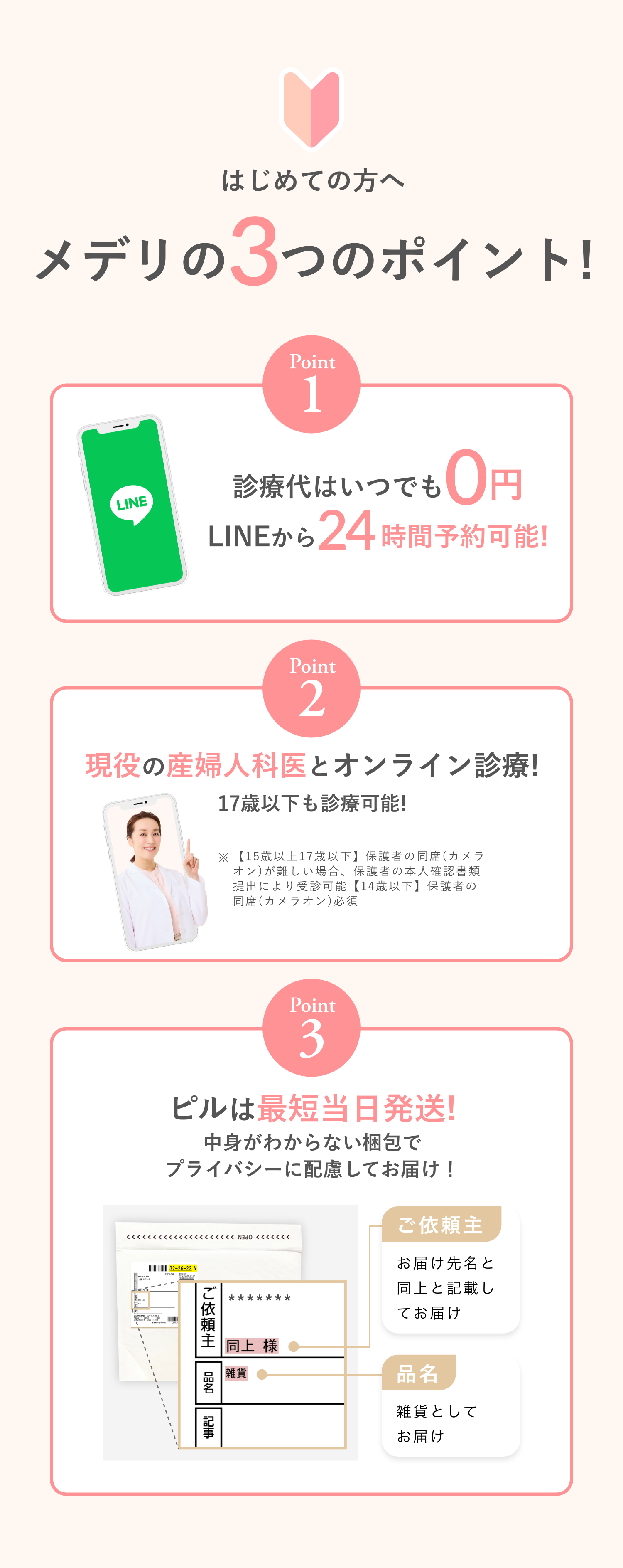 ピルの処方において医師との診療は必須なため、 mederi Pillのご利用がはじめての方には必ず受けていただきます。