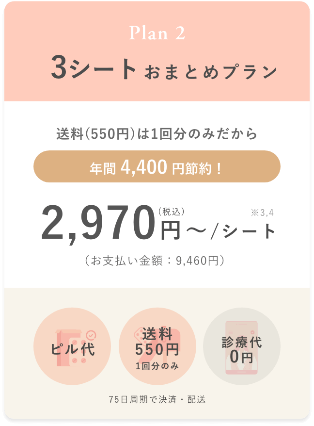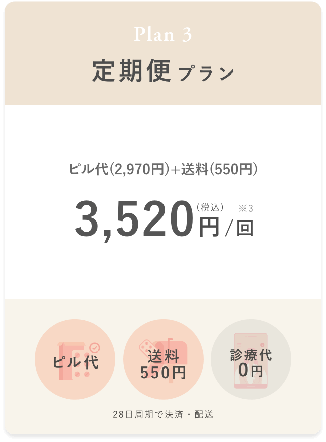予約日時に医師とのオンラインでの診療を行い、ピルの処方が決まり次第、最短翌日でお手元にピルを届け、それ以降は配送プランに応じて定期配送いたします。